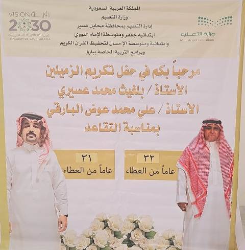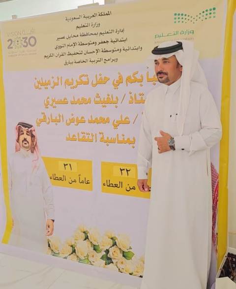 مجمع جعفر والنووي والإحسان يحتفي بتقاعد بلغيث عسيري وعلي البارقي