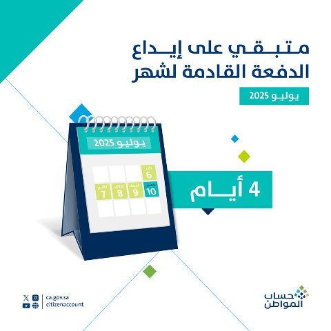 #حساب_المواطن: 4 أيام تفصل عن صرف الدفعة الـ92 لشهر يوليو