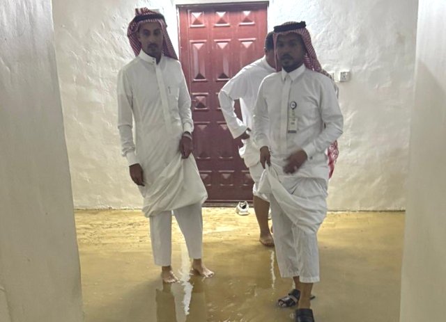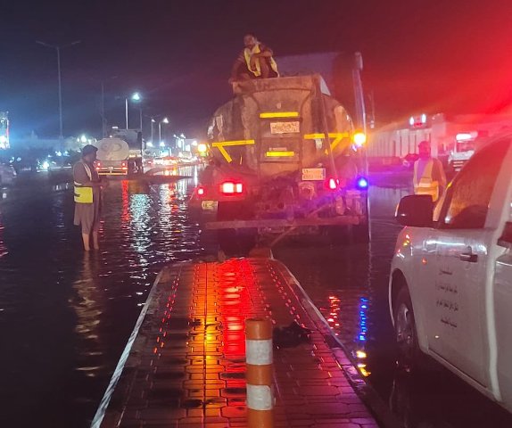فرق طوارئ بلدية ” المظيلف ” تنزح مياه الامطار وتباشر البلاغات