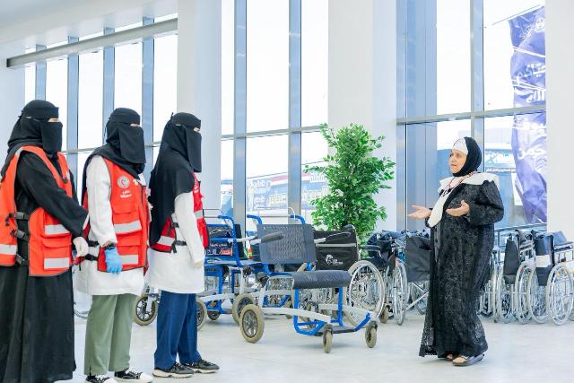 خدمات إسعافية متكاملة لضيوف الرحمن منذ لحظة الوصول وحتى المغادرة حيث يتواجد 50 متطوعًا ومتطوعة يوميًا وتغطية مستمرة لحركة القادمين والمغادرين استجابة فورية للحالات الطارئة وتقديم الرعاية الطبية الإسعافية من خلال قياس العلامات الحيوية وكذلك نقل كبار السن والمرضى و دعم ميداني لتسهيل حركة الحجاج .