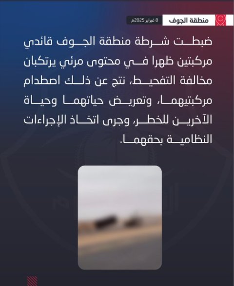 ضبْط قائدَي مركبتَيْن لارتكابهما مخالفة التفحيط في الجوف