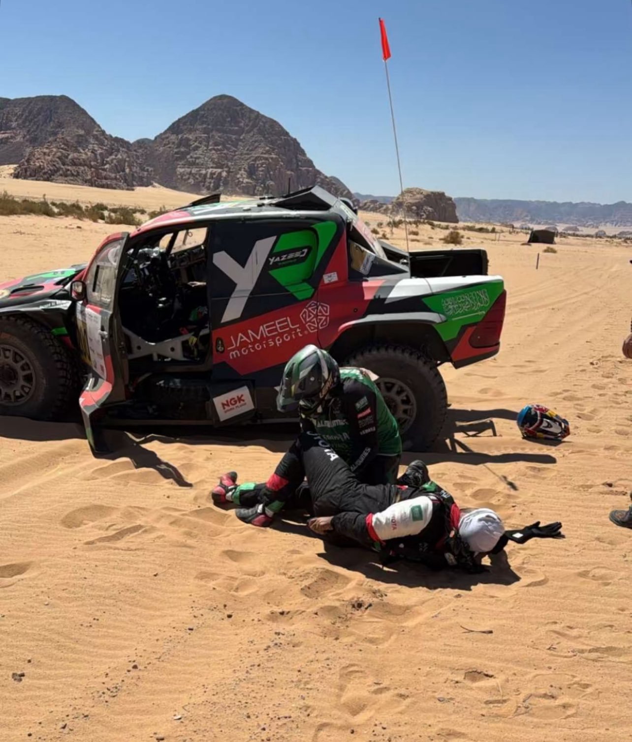 إصابة يزيد الراجحي بكسر فقرتين في رالي باها في الأردن