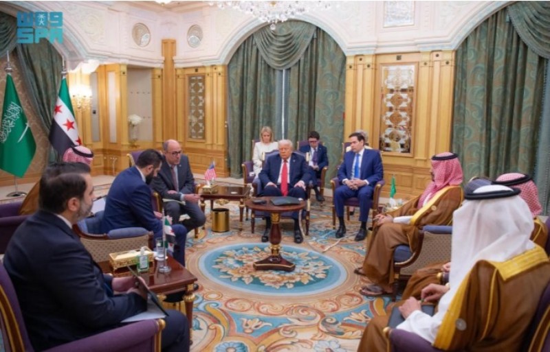 بدعوة كريمة من صاحب السمو الملكي الأمير محمد بن سلمان بن عبدالعزيز آل سعود ولي العهد رئيس مجلس الوزراء، تم عقد لقاء في (الرياض) صباح هذا اليوم الأربعاء ( 16 / 11 / 1446 هـ ) الموافق ( 14 / 5 / 2025 م ) بين سموه الكريم وفخامة رئيس الولايات المتحدة الأمريكية السيد / دونالد جي ترمب، وفخامة رئيس الجمهورية التركية السيد / رجب طيب أردوغان (مشاركًا عبر اتصال هاتفي) وفخامة رئيس الجمهورية العربية السورية السيد / أحمد الشرع، وتم تناول مستقبل الأوضاع في سوريا، وتأكيد أهمية استقرارها وسيادتها ووحدة أراضيها، وتحقيق الأمن والرخاء للشعب السوري، وكذلك بحث الأوضاع الإقليمية وأهمية العمل على إيجاد الحلول المناسبة لها.