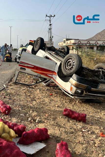 انقلاب وانيت محملة بالطماطم والبصل واصابة قائدها ببارق