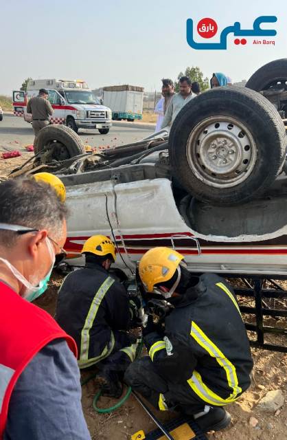 وباشرت الدوريات من قسم المرور بمحافظة بارق الحادث وأيضاً فرقة من الدفاع المدني وقامتا بإعادة المركبة لوضعها الطبيعي واتخاذ الإجراءات اللازمة في مثل هذه الحوادث وتحرير الحركة على الطريق الدولي .