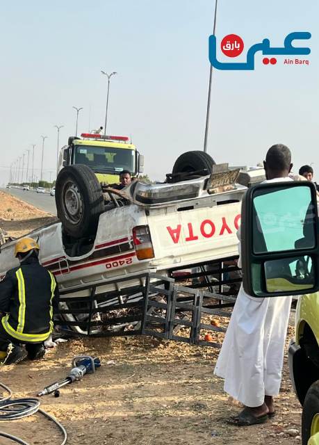 تعرض قائد مركبة مقيم من الجنسية السودانية لإصابة وصفة بالمتوسطة عصر أمس الجمعة اثر انقلاب المركبة التي كان يستقلها على الطريق الرابط بين محافظتي بارق ومحايل عسير وبالتحديد في قرية العيرية جنوبي بارق .