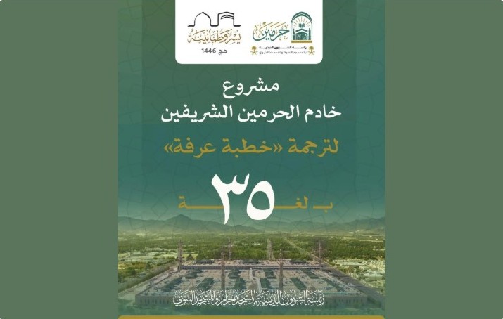 دشّنت رئاسة الشؤون الدينية بالمسجد الحرام والمسجد النبوي أمس، مسارًا إثرائيًا استثنائيًا، لإيصال ترجمة خطبة عرفة لموسم حج هذا العام 1446هـ للمسلمين في جميع أنحاء العالم بـ 35 لغة، ويستفيد ما يقارب 5 ملايين مستفيد، لإثراء تجربة ضيوف الرحمن، وإيصال رسالة الوسطية عالميًا باللغات المتعددة.