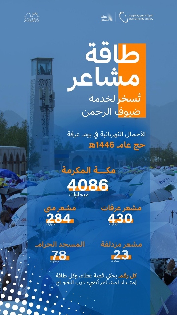 السعودية للكهرباء : أحمال عرفات بلغت 430 ميجاوات والخدمة مستقرة