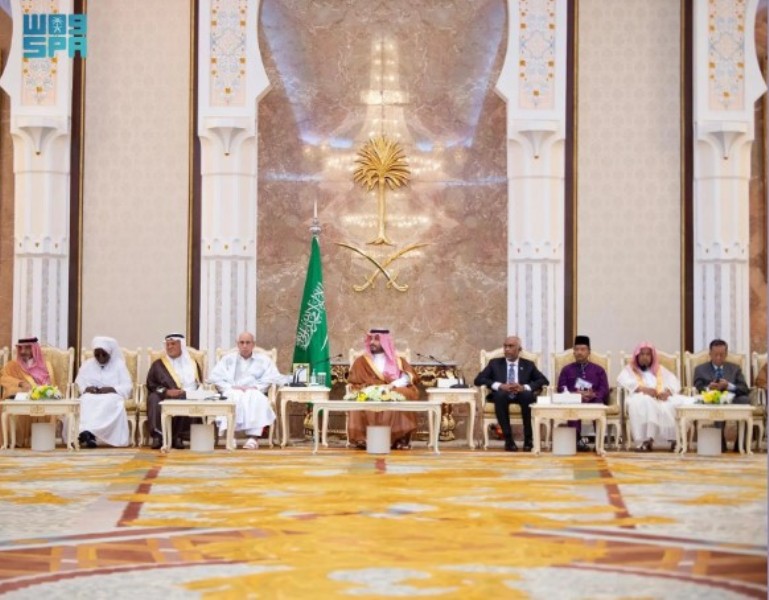 نيابة عن خادم الحرمين الشريفين الملك سلمان بن عبدالعزيز آل سعود ـ حفظه الله ـ، أقام صاحب السمو الملكي الأمير محمد بن سلمان بن عبدالعزيز آل سعود، ولي العهد رئيس مجلس الوزراء، في الديوان الملكي بقصر منى، اليوم، حفل الاستقبال السنوي لأصحاب الفخامة والدولة، وكبار الشخصيات الإسلامية، وضيوف خادم الحرمين الشريفين، وضيوف الجهات الحكومية، ورؤساء الوفود ومكاتب شؤون الحجاج الذين أدوا فريضة الحج لهذا العام يتقدمهم فخامة الرئيس محمد ولد الغزواني رئيس الجمهورية الإسلامية الموريتانية، وفخامة الرئيس الدكتور محمد معز رئيس جمهورية المالديف، ونائبة رئيس جمهورية بنين السيدة مريم شابي تالاتا زيمي بيريما، والرئيس الصومالي الأسبق السيد شريف شيخ أحمد.