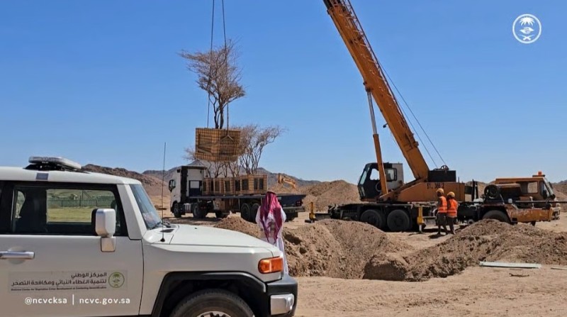 وأوضح المركز أن عملية النقل تمت باستخدام تقنيات متخصصة، شملت تقليم الجذور، ومعالجة الأشجار بالأسمدة، وتطهيرها من الآفات الحشرية، إلى جانب استخدام صناديق معالجة خاصة لضمان سلامتها خلال عملية النقل.