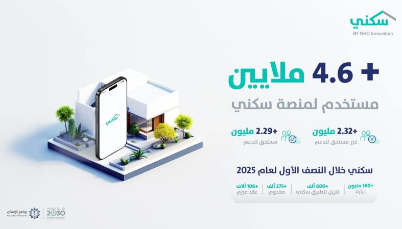 وأوضح برنامج “سكني” أنه خلال النصف الأول من عام 2025م أُبرم أكثر من (106) آلاف عقد سكني عبر المنصة، واستقبلت المنصة في الفترة نفسها ما يزيد عن (160) مليون زيارة رقمية، وتجاوز عدد المخدومين خلال هذه المدة أكثر من (275) ألف، وسُجل أكثر من (200) ألف مستخدم جديد؛ ما يعكس ارتفاع الإقبال على الخدمات الرقمية والموثوقية التي تحظى بها المنصة.