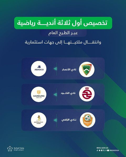 تخصيص أندية “الأنصار والخلود والزلفي” عبر الطرح العام