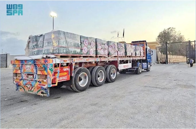عبور 7 شاحنات إغاثية سعودية جديدة إلى قطاع غزة