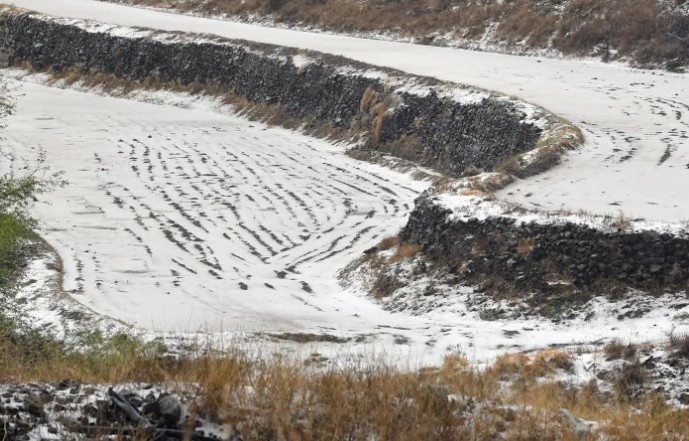 وأظهرت المشاهد جريان المياه واكتساء الأرض بالبرد، لترسم على وجوه المصطافين ابتسامات الفرح، وتبعث الحياة في مرتفعاتها ووديانها التي غمرها الثلج والماء معًا.