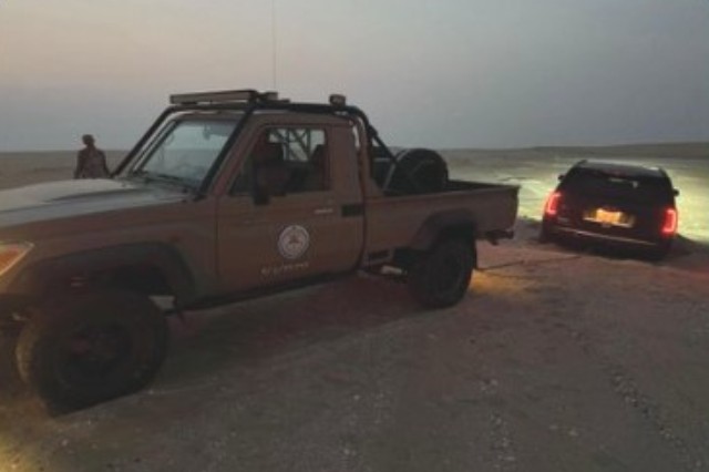 مساعدة مواطن وعائلته علقت مركبتهم بالكثبان الرملية