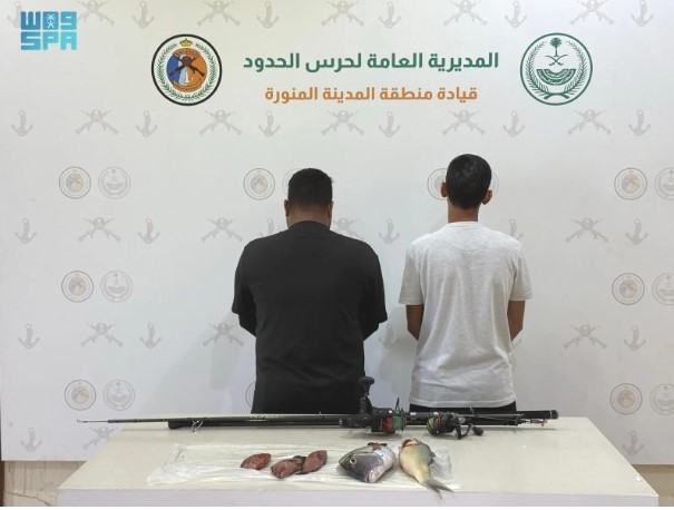 ضبطت الدوريات الساحلية لحرس الحدود في ينبع بمنطقة المدينة المنورة مواطنين مخالفين للائحة الأمن والسلامة لمزاولي الأنشطة البحرية في المناطق البحرية للمملكة العربية السعودية، وذلك لممارستهما الصيد دون تصريح، وبحوزتهما أسماك مصيدة، واتُخذت الإجراءات النظامية بحقهما بالتنسيق مع الجهات المختصة.
