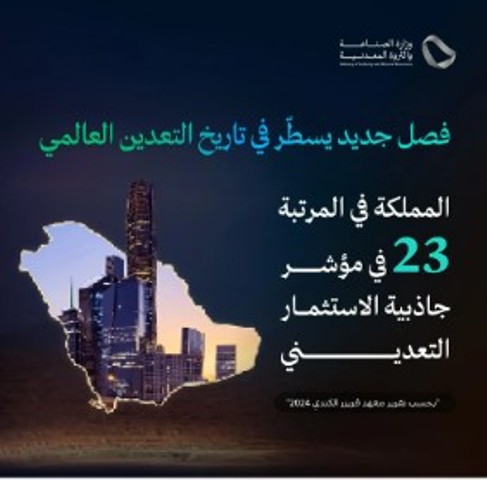 قفز قطاع التعدين السعودي من المركز (104) إلى (23) عالميًّا في مؤشر جاذبية الاستثمار التعديني، وفقًا لتقرير المسح السنوي لشركات التعدين الصادر عن معهد فريزر الكندي لعام 2024، حيث حقق إنجازًا عالميًّا غير مسبوق خلال العقد الأخير، متقدّمًا على قطاعات التعدين في وجهات بارزة في آسيا وأمريكا اللاتينية، لترسخ المملكة مكانتها واحدةً من أبرز القوى الصاعدة عالميًّا في قطاع التعدين.