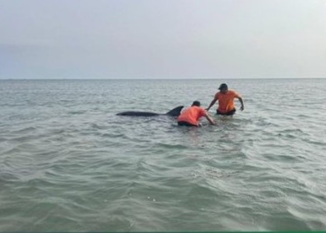 أعادت فرق البحث والإنقاذ بحرس الحدود في محافظة القنفذة بمنطقة مكة المكرمة دلفينًا إلى البحر بعد أن جرفته الأمواج إلى الشاطئ، وذلك بالتعاون مع المركز الوطني لتنمية الحياة الفطرية.