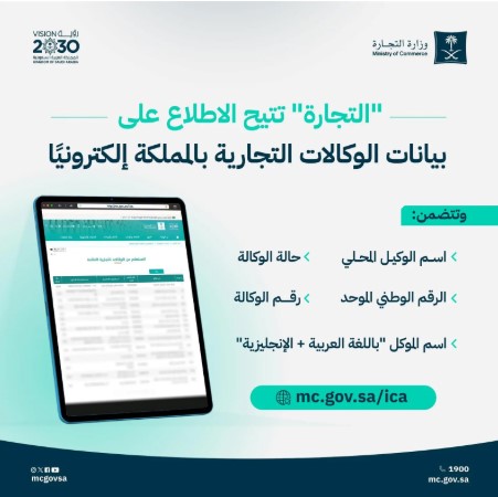 ويمكن الاستفادة من خدمة الاستعلام عن بيانات الوكالات التجارية على الرابط : (http://mc.gov.sa/ica).