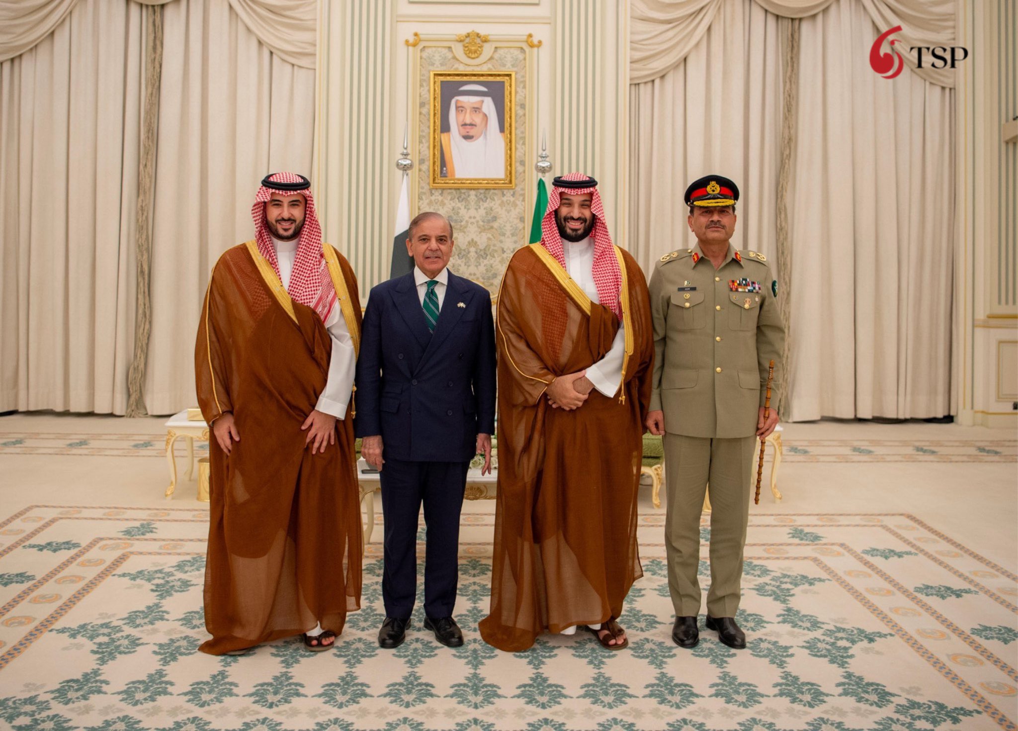 فيما حضر من الجانب الباكستاني، معالي نائب رئيس الوزراء وزير الخارجية السيد محمد إسحاق دار، ورئيس أركان الجيش الباكستاني المشير سيد عاصم منير، ووزير الدفاع السيد خواجة محمد آصف، ومعالي وزير الداخلية السيد محسن نقوي، ومعالي وزير المالية السيد محمد أورنجزيب، ومعالي وزير تغيير المناخ الدكتور مصدق مسعود ملك، ومعالي وزير الإعلام السيد عطاء الله تارر، والمساعد الخاص لرئيس الوزراء سيد طارق فاطمي، وسفير باكستان لدى المملكة أحمد فاروق، والسكرتير الأول لرئيس أركان الجيش اللواء محمد جواب طارق، والسكرتير العسكري لرئيس الوزراء اللواء تجديد ممتاز، ورئيس مراسم الدولة في باكستان تيبو عثمان.