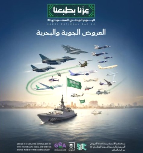 أعلن معالي رئيس مجلس إدارة الهيئة العامة للترفيه (GEA) المستشار تركي بن عبدالمحسن آل الشيخ اليوم، عن عدد من الفعاليات التي تنظمها الهيئة بمناسبة اليوم الوطني السعودي الـ(95)، التي ستقام في جميع مناطق المملكة، حيث تقام فعاليات العروض الجوية والبحرية في سماء المملكة وعلى شواطئها، إذ تزدان المدن بألوان الطائرات الاستعراضية ومناوراتها التي تزين الأجواء، إلى جانب العروض البحرية، التي تشارك فيها العديد من الفرقاطات والزوارق والمسيرة البرية بالآليات والعربات والفرقة الموسيقية.