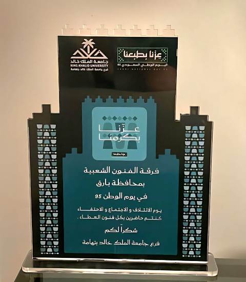 وتقديرًا لمشاركة الفرقة، قدّمت إدارة الجامعة درعًا تذكاريًا تكريمًا لجهودها ومساهمتها في إنجاح احتفالات اليوم الوطني، في بادرة تعكس التعاون والتكامل بين المؤسسات التعليمية والفرق الشعبية بالمحافظات.