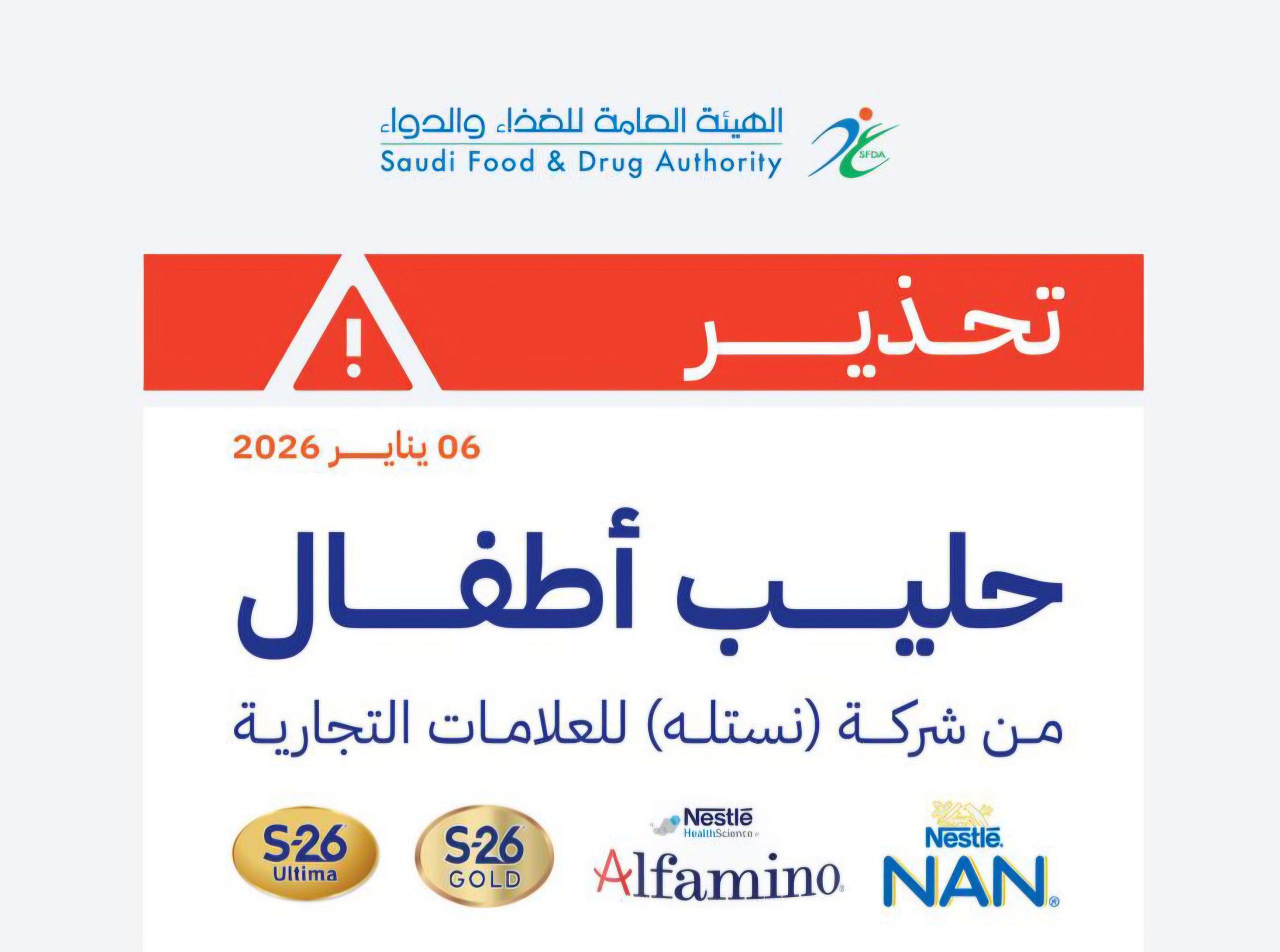 حذّرت الهيئة العامة للغذاء والدواء من استهلاك منتجات حليب أطفال من إنتاج شركة نستلة للعلامات التجارية نان “NAN”، ألفامينو “ALFAMINO”، إس – 26 جولد “S-26 GOLD”، إس – 26 ألتيما “S-26 ULTIMA”، وذلك بناءً على إبلاغ طوعي من الشركة يفيد بقيامها بسحب عدد من منتجاتها، لاحتمالية تلوثها بسم “سيريوليد” (Cereulide) الذي تفرزه بكتيريا “باسيلس سيريوس” (Bacillus cereus)، التي قد تشكل خطرًا على صحة الرضع.