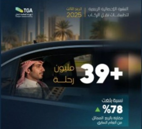 كشفت الهيئة العامة للنقل، اليوم، أن عدد الرحلات المنفذة عبر تطبيقات نقل الركاب في المملكة حققت ارتفاعًا ملحوظًا خلال الربع الثالث من عام 2025م، بعد أن سجلت أكثر من 39.04 مليون رحلة، بارتفاع بلغ 78 % مقارنة بالربع المماثل من عام 2024م.