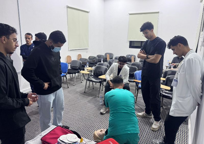 وقد تضمنت ورشة اعداد مدرب على المهارات الاسعافية الاساسية جلسات نظرية وعملية، حيث مارس الطلاب المهارات مباشرة على الأدوات التدريبية تحت إشراف مدربين متخصصين، مما أكسبهم الثقة والمهارة اللازمة لتدريب الآخرين بفاعلية.