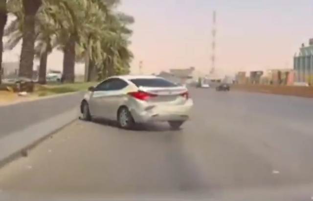 متهور يصطدم بثلاث مركبات أمام دورية للمرور في الرياض