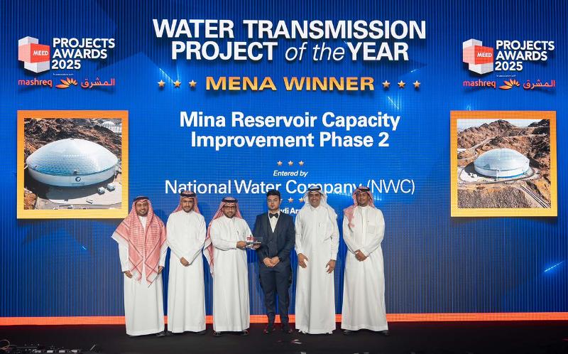 حصدت شركة المياه الوطنية جائزتي أفضل مشروع مياه على مستوى المملكة وعلى مستوى الشرق الأوسط وشمال أفريقيا، عن مشروعها ( إنشاء خزان 190 ألف م3 في المشاعر المقدسة) في انجاز وطني جديد يسجل للشركة.