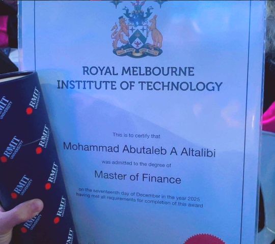 ” الطالبي ” ينال الماجستير في الأنظمة المالية من أستراليا