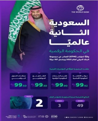 ويأتي هذا الإنجاز تتويجًا لمسار تصاعدي للحكومة الرقمية في المملكة العربية السعودية منذُ إطلاق رؤية المملكة 2030، التي جعلت الإنسان محور التحول الرقمي من خلال تقديم أفضل الخدمات الحكومية للمواطن والمقيم، وتحسين تجربة المستفيد، ورفع كفاءة العمل الحكومي، وقد صاحب ذلك تكامل حكومي واسع، وتطوير شامل للأنظمة الرقمية، وتبني الذكاء الاصطناعي والتقنيات الناشئة، حيث حققت السعودية منذُ النسخة الأولى لمؤشر نضج الحكومة الرقمية (GTMI) الصادر عن البنك الدولي المرتبة 49 عالميًا في بيانات عام 2020، قبل أن تقفز إلى المرتبة الثالثة عالميًا في نسخة عام 2022، لتواصل تفوقها وصولًا إلى المركز الثاني عالميًا في عام 2025، مؤكدة مكانتها لتكون أبرز الدول الرائدة عالميًا في التحول الرقمي والابتكار.