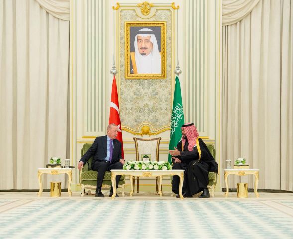 وعقد سمو ولي العهد وفخامة رئيس جمهورية تركيا جلسة مباحثات رسمية – ورحب سمو ولي العهد بفخامة رئيس جمهورية تركيا في المملكة، فيما عبر فخامته عن سعادته بهذه الزيارة ولقائه سمو ولي العهد.