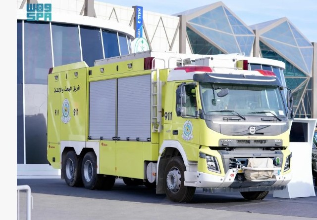 تستعرض المديرية العامة للدفاع المدني لزوار جناح وزارة الداخلية في معرض الدفاع العالمي 2026، المقام بمدينة الرياض خلال الفترة من 8 حتى 12 فبراير الجاري، شاحنة التدخل في حوادث الانهيارات بالمواقع عالية الخطورة.
