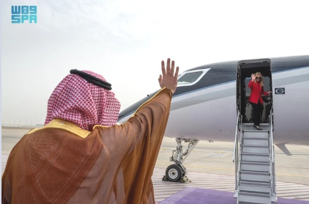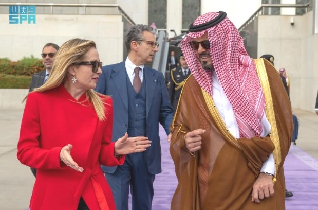 رئيسة وزراء إيطاليا تغادر جدة ونائب أمير مكه في وداعها