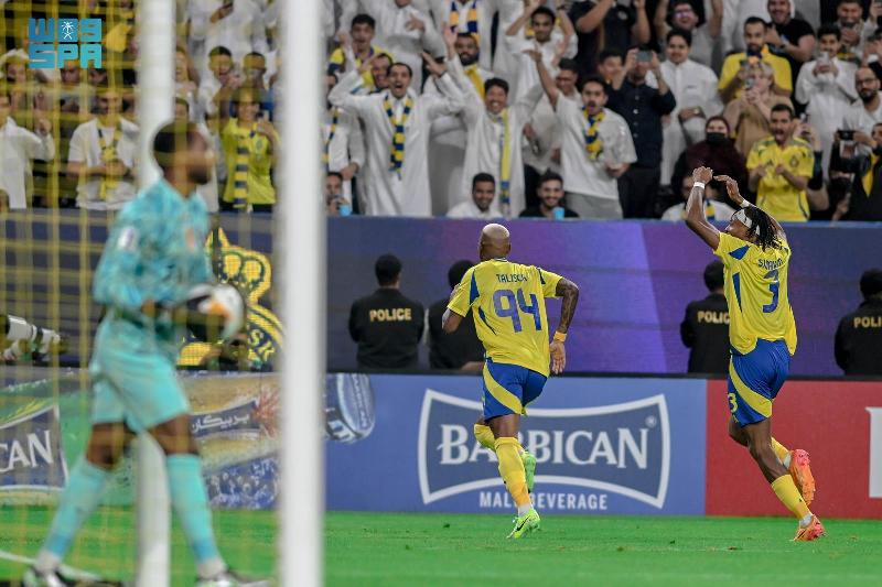 وحسم النصر الفوز منذ الشوط الأول، الذي أنهاه متقدمًا بثلاثة أهداف، قبل أن يؤكد فوزه بهدفين في الشوط الثاني، إذ افتتح البرازيلي أندرسون تاليسكا أهداف النصر عند الدقيقة الخامسة، والبرتغالي كريستيانو رونالدو أحرز الهدف الثاني بالدقيقة 31، وبعدها بـ 6 دقائق سجل أنجيلو بورجيس الثالث.