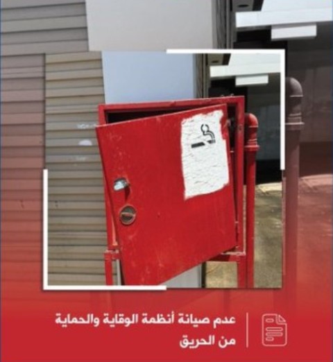 عدم صيانة أنظمة الحماية من الحريق مخالفة توجب العقوبة