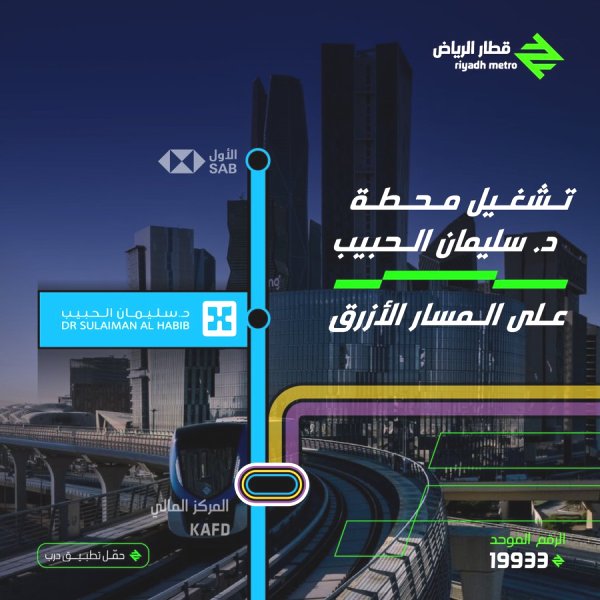 #قطار_الرياض يعلن افتتاح محطة د . سليمان الحبيب على المسار الأزرق