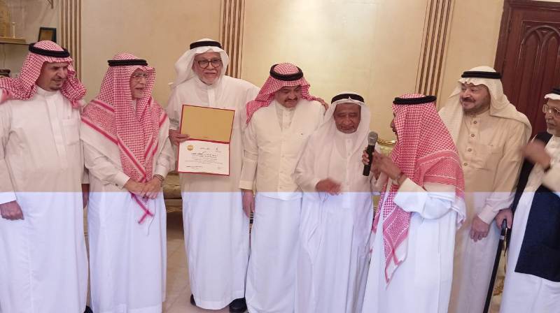 وفي ختام الأمسية كرم معالي الدكتور عبدالعزيز خوجة معالي الدكتور محمد صالح بنتن وكرم الشاعر علي مهدي المستشار إحسان طيب ، ثم دعي الحضور لمأدبة العشاء.