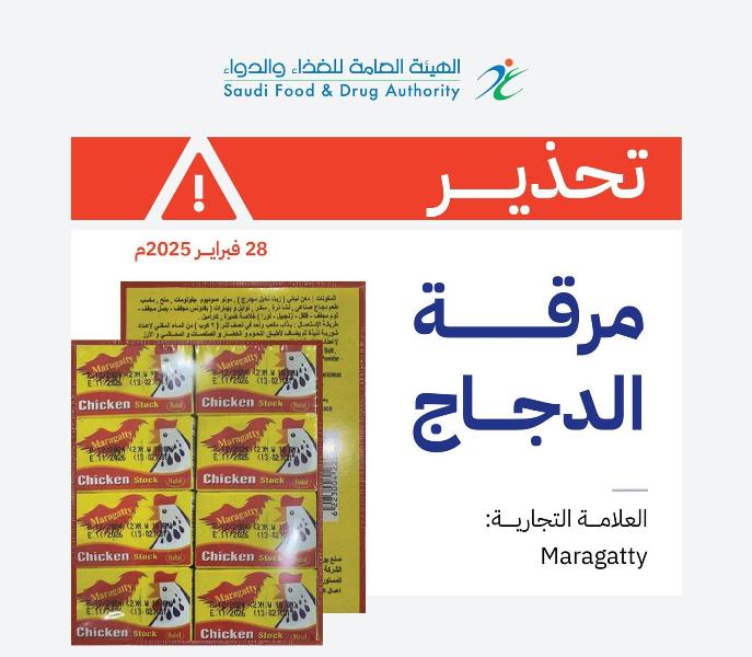 “الغذاء والدواء” تحذّر من منتج مرقة الدجاج للعلامة التجارية (maragatty)