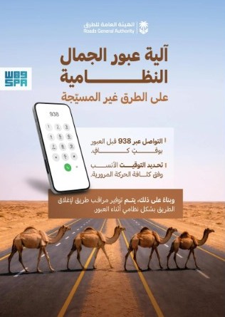 أوصت الهيئة العامة للطرق مُلَّاك الإبل الراغبين في نقل إبلهم عبر شبكة الطرق التي لا تتوفر بها سياج ومعابر للجِمال،…