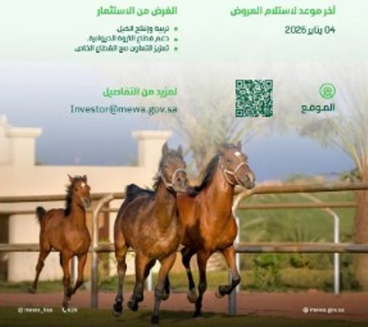 أعلنت وزارة البيئة والمياه والزراعة عن طرح فرصة استثمارية لتربية وإنتاج الخيل بالمنطقة الشرقية؛ للإسهام في دعم قطاع الثروة الحيوانية…