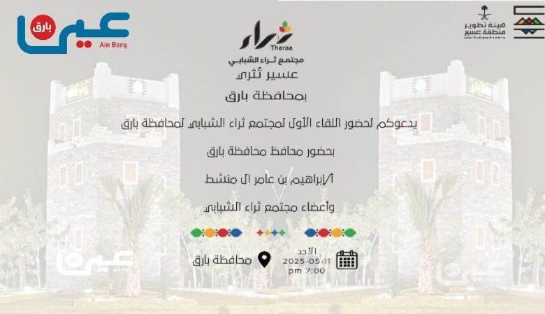 برعاية محافظ بارق الأستاذ إبراهيم بن عامر آل منشط يقيم مجتمع ثراء الشبابي ( عسير تثري ) بمحافظة بارق اللقاء…