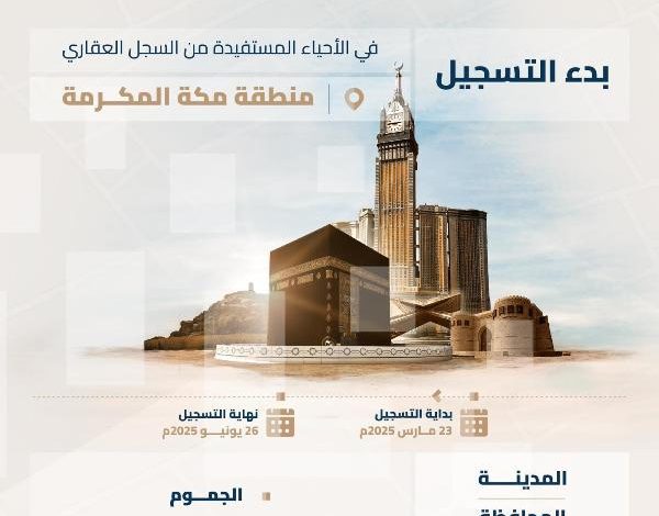 أعلن السجل العقاري اليوم، عن بدء استقبال طلبات التسجيل العيني الأول لـ159 قطعة عقارية في جزء من حي النقابة بمحافظة…