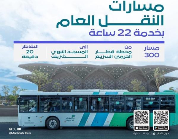أعلنت حافلات المدينة المنورة، التي تشرف عليها هيئة تطوير المدينة المنورة اليوم، عن توفير مسار ضمن منظومة النقل العام يعمل…
