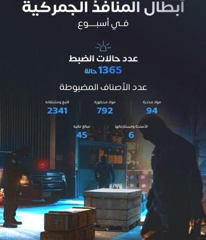 سجلت المنافذ الجمركية البرية والبحرية والجوية 1365 حالة ضبط للممنوعات، وذلك في إطار الجهود المستمرة التي تبذلها هيئة “الزكاة والضريبة…