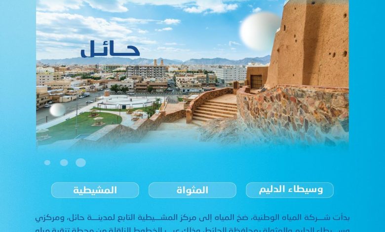 بدأت شركة المياه الوطنية، ممثلة بوحدة أعمال المياه بمنطقة حائل، ضخ المياه إلى مركز المشيطية التابع لمدينة حائل، ومركزي “وسيطاء…