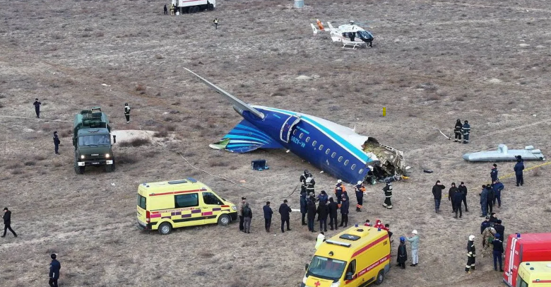 أظهر فيديو متداول لحظة سقوط وتحطم طائرة نوع إمبراير 190 تابعة للخطوط الأذربيجانية وعلى متنها 65 راكباً و 5 من…